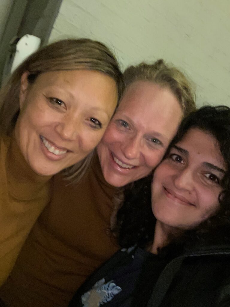 Her er et PR foto fra teatrets hjemmeside, endvidere kan der læses mere om stykket her og ellers er her et foto af mig med de sublime og smukke kvinder, Solvej & Kathrine efter forestillingen. Jeg mødte dem lige hurtigt, overraskende med kram, smil og snak da de skulle med de to andre backstage til omklædning, notatskrivning mv.