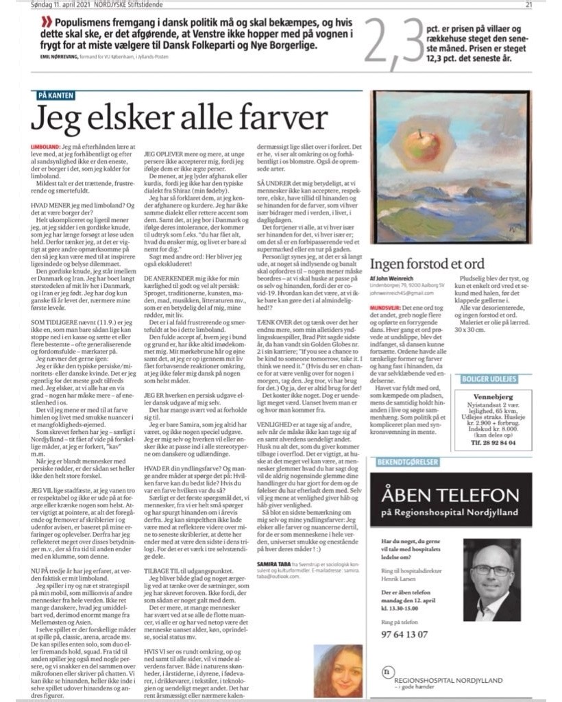 Jeg har så forklaret dem, at jeg kender afghanere og kurdere. Jeg har ikke samme dialekt eller rettere accent som dem. Samt det, at jeg bor i Danmark og ifølge deres intolerance, der kommer til udtryk som f.eks. “du har fået alt, hvad du ønsker dig, og livet er bare så nemt for dig.”